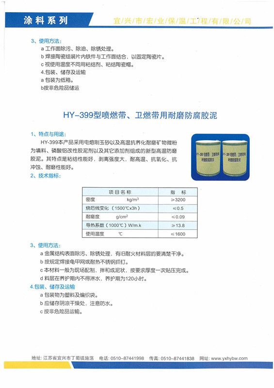 HY-399型噴燃帶、衛燃帶用耐磨防腐膠泥
